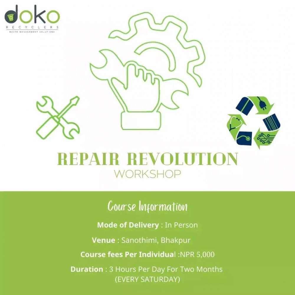 The Repair Revolution Workshop is a Doko Recyclers initiative that promotes dwindling repair culture in Nepal which will be supported by Karkhana-Nepal. We aim to promote youth actions in repairing culture and help in their integration and mobilization for the development of the repair market. The workshop will educate upper primary and secondary level students on WEEE, its repairing techniques, and proper dismantlement methodology. The participants will hone their technical and problem-solving skills through an experiential learning. The workshop is based on ‘Training of Trainers’ which will empower these students to promote repairing to their peers and community people. A session will include 18 students who will be guided by two facilitators to shape their ideas into a plan. The students will work on a project and showcase it in an exhibition on the last day. Doko Recyclers will also encourage them to consider repairing as a career.