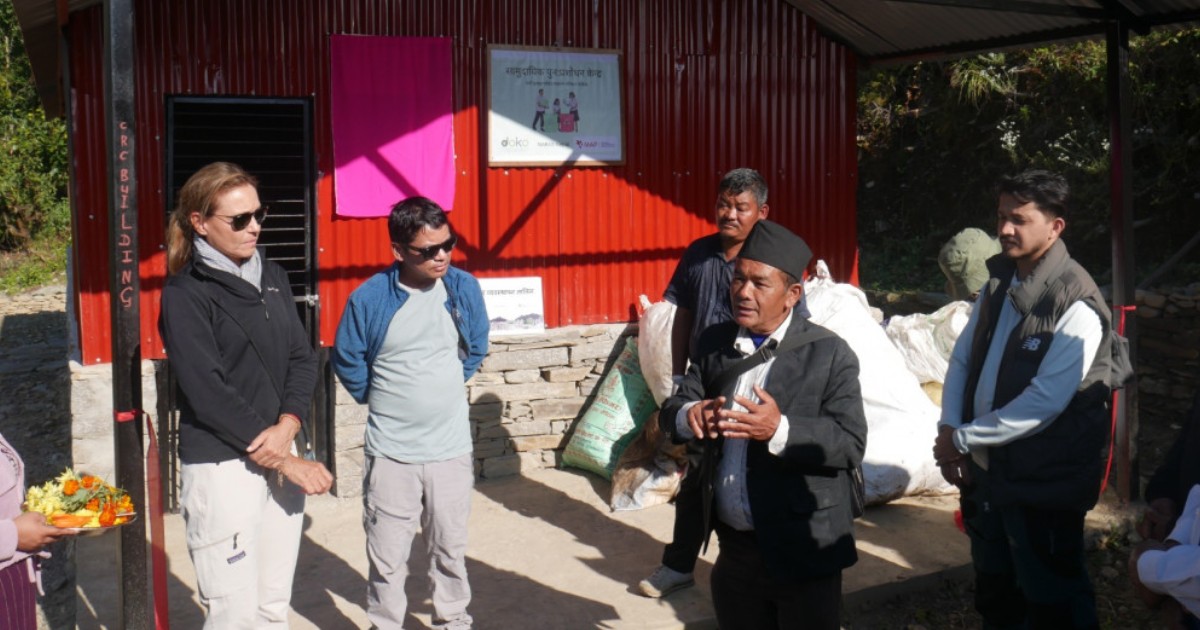 A Community Recycling Center (CRC) at Tawal village is the second waste infrastructure in Ganga Jamuna Rural Municipality of Dhading, supported by MAP (Monaco Aide Presence). The Community Recycling Center is aimed at providing dry waste collection services to the 592 households residing in four villages: Tawal, Salleri, Dhuseni, and Kutal. The CRC is equipped with a dry waste collection space, segregation space, bailing space, and a temporary landfill. Two waste operators have been provided with the necessary protective gear and knowledge to collect and manage dry waste from the villages.